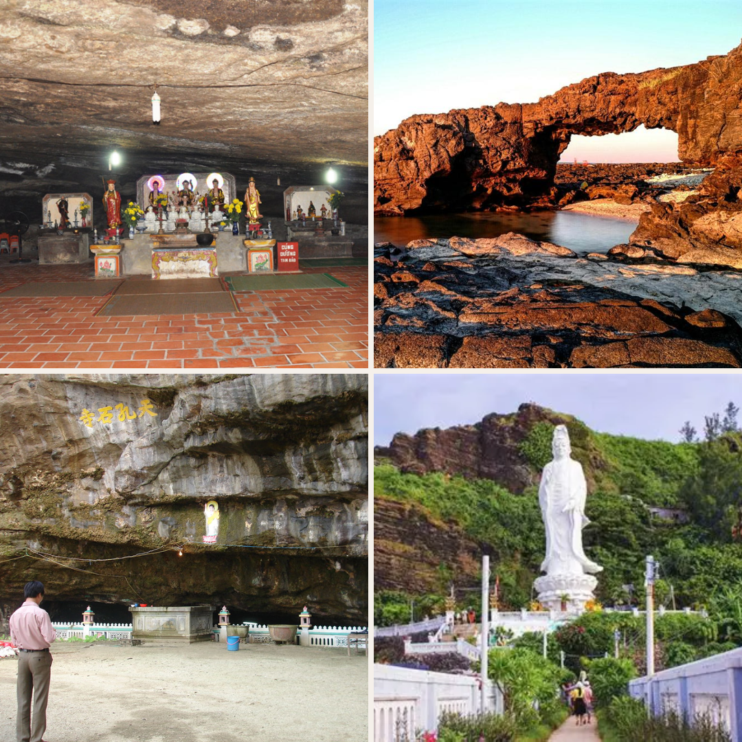 Chùa Đục: Tọa lạc giữa khung cảnh thiên nhiên hùng vĩ của đảo Lý Sơn, Chùa Đục là điểm đến tâm linh đặc biệt được người dân địa phương trìu mến gọi là “chùa không sư”. Không chỉ là nơi thờ tự linh thiêng, chùa còn là chốn gửi gắm niềm tin sâu sắc của ngư dân trước mỗi chuyến vươn khơi đầy sóng gió. Theo truyền thuyết dân gian, chính tại nơi đây, Đức Quan Thế Âm Bồ Tát từng hiển linh để che chở cho cư dân đảo vượt qua thiên tai, bão tố.