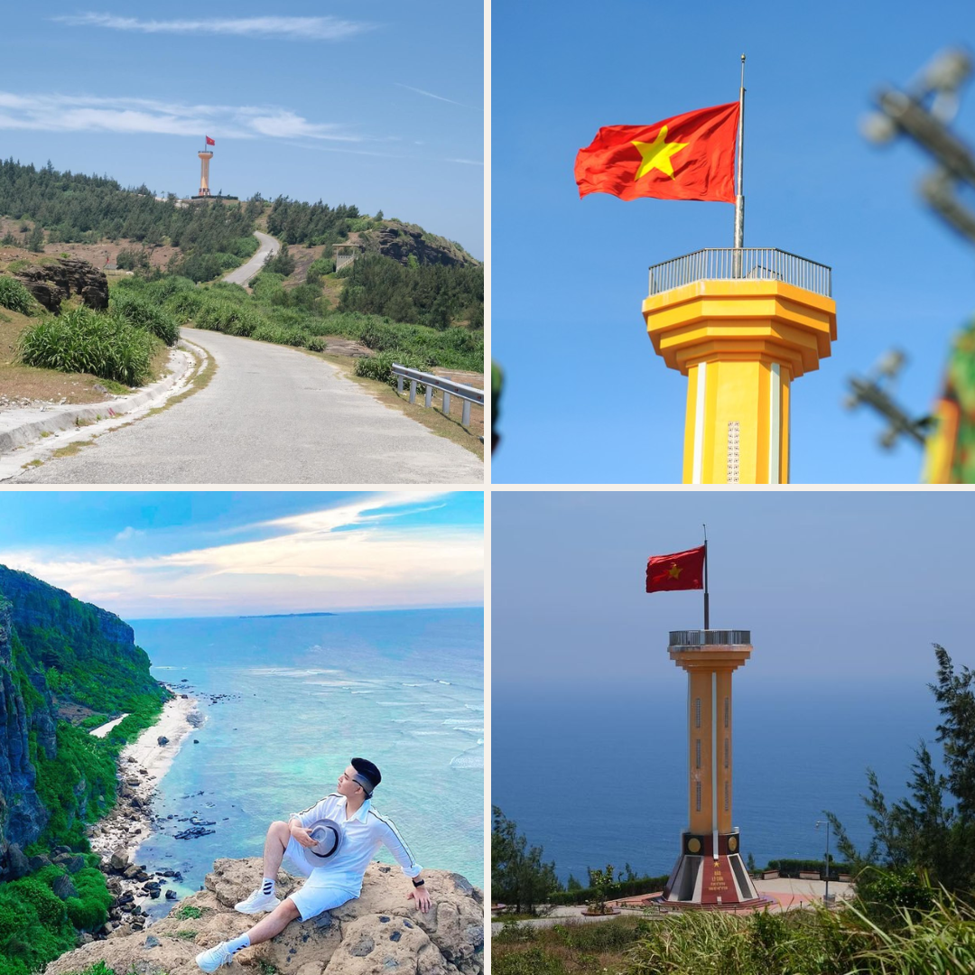 Cột cờ Tổ quốc đảo Lý Sơn: là điểm nhấn biểu tượng của hòn đảo, cột cờ còn mang trong mình ý nghĩa thiêng liêng về chủ quyền biển đảo, là niềm tự hào không chỉ của người dân Lý Sơn mà còn của hàng triệu con tim đất Việt. Đến đây, du khách có thể phóng tầm mắt chiêm ngưỡng khung cảnh thiên nhiên hùng vĩ và ghi lại những bức ảnh rực rỡ bên lá cờ đỏ sao vàng, biểu tượng bất diệt của tinh thần dân tộc.