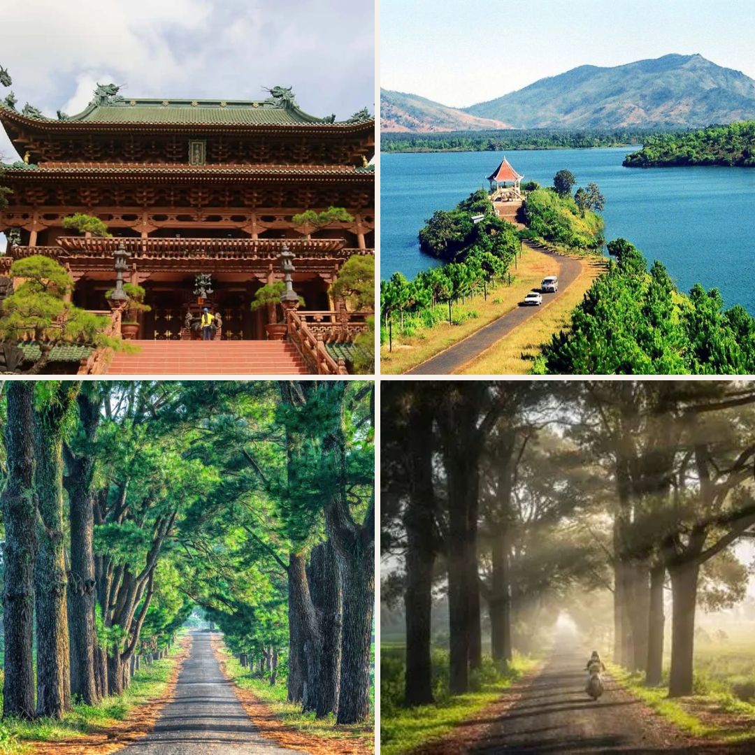 Chùa Khánh Lâm: ngôi chùa được xây dựng theo lối kiến trúc truyền thống với những đường nét tinh xảo, thấm đẫm tinh thần Phật giáo. Tọa lạc giữa rừng thông nguyên sinh xanh mát quanh năm, chùa là nơi chiêm bái linh thiêng mang không gian lý tưởng để thiền định và tìm lại sự tĩnh lặng trong tâm hồn. Khuôn viên rộng rãi, phủ đầy cây xanh và hoa cỏ, tạo nên khung cảnh thanh bình, trong lành và đầy thiền vị.