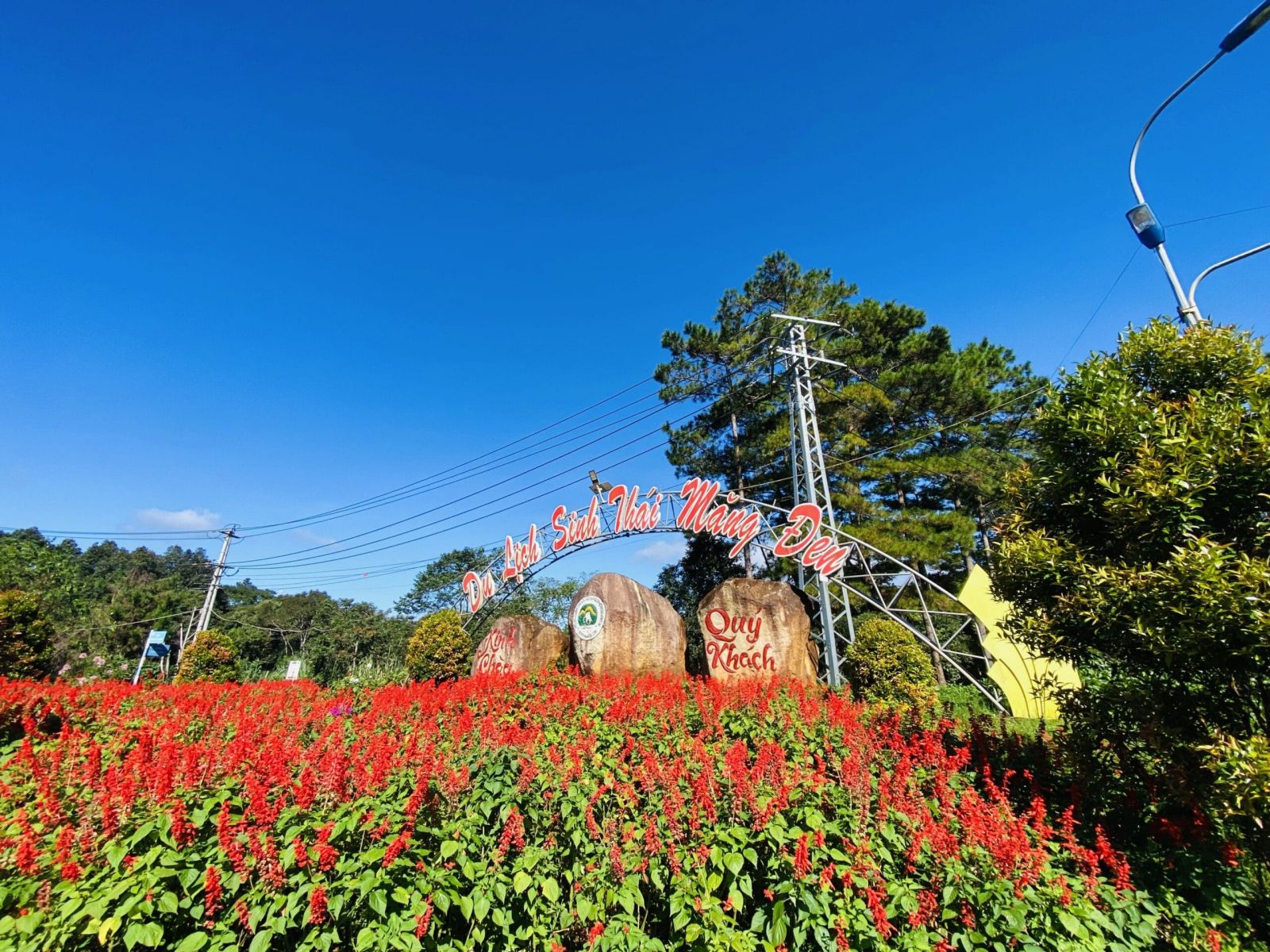- Con đường thông Cổng chào Măng Đen: những hàng thông xanh nối dài vô tận, phủ bóng mát dịu dàng quanh năm, cùng ánh nắng xuyên qua từng tán lá lung linh. Đặc biệt, vào mùa cẩm tú cầu nở rộ, sắc tím pha xanh nhẹ nhàng tô điểm cho khung cảnh thêm phần yên bình và lãng mạn, khiến du khách như lạc vào một thước phim đầy mê hoặc. Không chỉ là điểm chụp hình tuyệt vời, con đường này còn là biểu tượng độc đáo, gợi nhớ nét đẹp giản dị, trữ tình đặc trưng của Măng Đen.