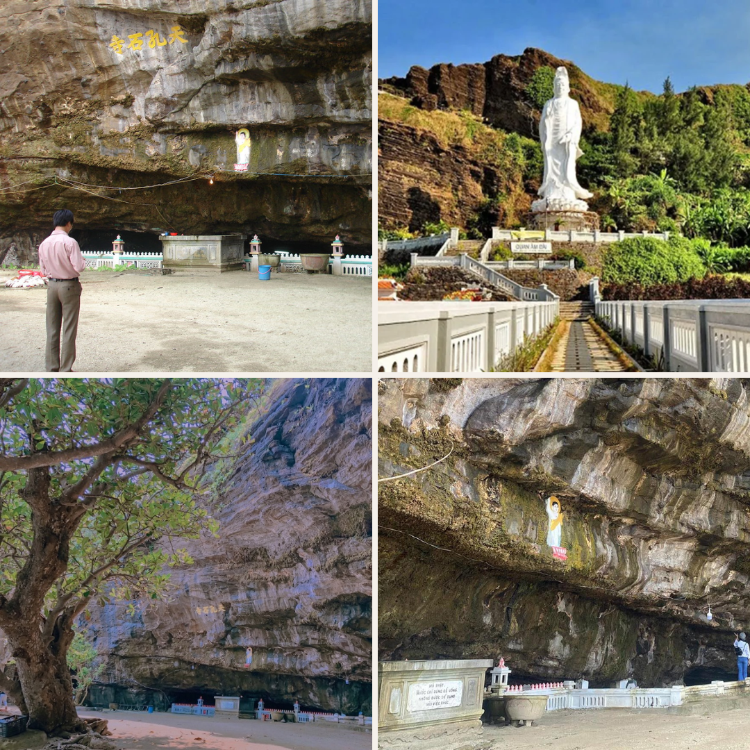 - Chùa Đục: điểm đến tâm linh đặc biệt bậc nhất trên đảo Lý Sơn, còn được biết đến với cái tên “chùa không sư” độc đáo. Ngôi chùa mang trong mình vẻ cổ kính đầy thiêng liêng, đồng thời là kho tàng văn hóa và tín ngưỡng sâu sắc của người dân địa phương. Theo truyền thuyết, nơi đây từng là chốn Đức Quan Thế Âm Bồ Tát hiện thân, che chở ngư dân trước những cơn bão tố dữ dội và hiểm nguy bất ngờ của biển cả.