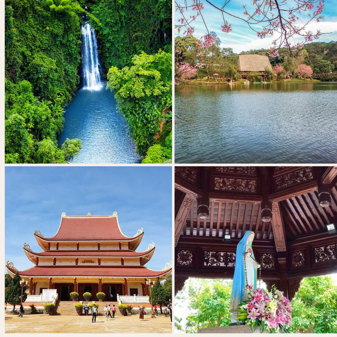 - Chùa Khánh Lâm: được xây dựng theo lối kiến trúc Phật giáo truyền thống với những đường nét tinh xảo, hài hòa giữa con người và thiên nhiên. Tọa lạc giữa rừng thông xanh mát quanh năm, chùa không chỉ là nơi chiêm bái linh thiêng mà còn là chốn lý tưởng để thiền định, tìm lại sự bình an trong tâm hồn.