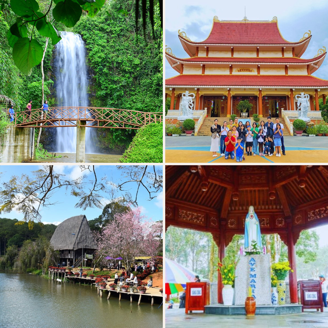 - Chùa Khánh Lâm: được xây dựng theo lối kiến trúc Phật giáo truyền thống với những đường nét tinh xảo, hài hòa giữa con người và thiên nhiên. Tọa lạc giữa rừng thông xanh mát quanh năm, chùa không chỉ là nơi chiêm bái linh thiêng mà còn là chốn lý tưởng để thiền định, tìm lại sự bình an trong tâm hồn.