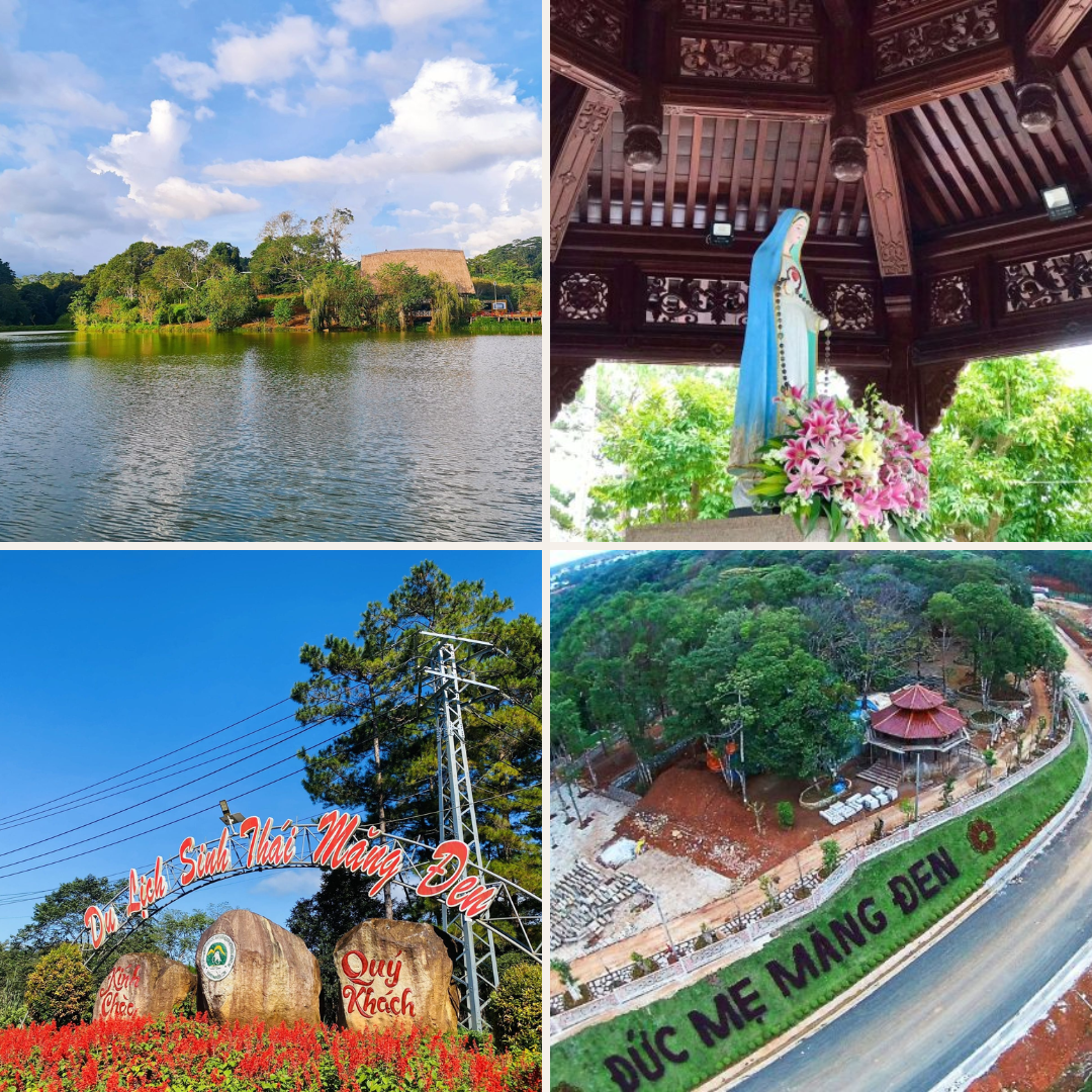 - Tượng Đức Mẹ Măng Đen: một biểu tượng tôn giáo thiêng liêng và nổi tiếng trong khu vực Măng Đen. Được tạc từ đá trắng, cao khoảng 1 mét, tượng mang dáng vẻ hiền từ và bao dung, là điểm đến hành hương của người dân địa phương cũng như du khách từ khắp nơi. Không chỉ mang giá trị tâm linh sâu sắc, nơi đây còn là điểm dừng chân thanh bình, thu hút những ai tìm kiếm sự an yên giữa núi rừng Măng Đen.
