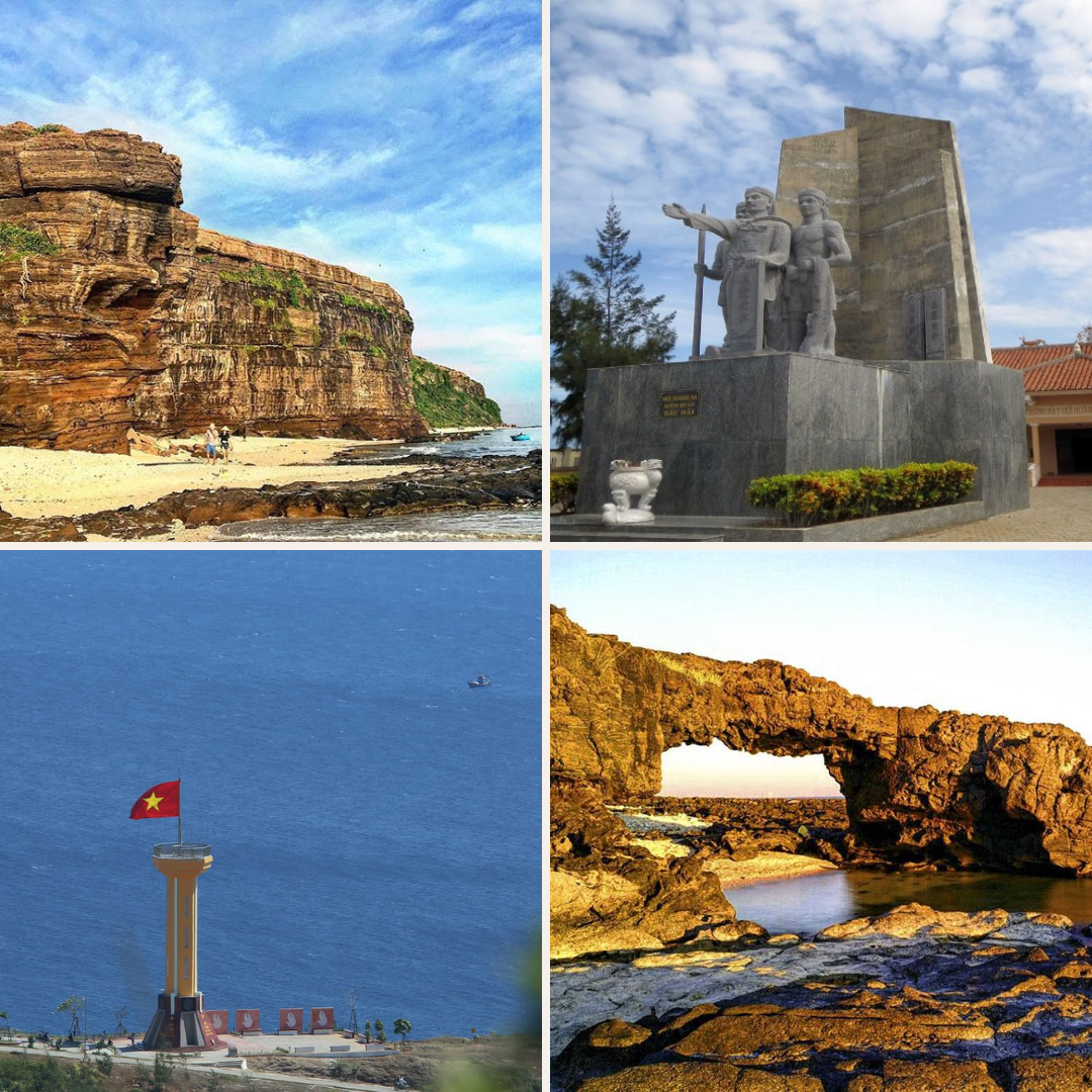 - Cột cờ Tổ quốc đảo Lý Sơn: biểu tượng thiêng liêng khẳng định chủ quyền biển đảo Việt Nam. Tọa lạc trên vị trí cao và rộng mở hướng ra biển lớn, lá quốc kỳ đỏ thắm với ngôi sao vàng năm cánh tung bay phấp phới giữa gió khơi, như lời nhắc nhở đầy kiêu hãnh về tinh thần bất khuất và lòng yêu nước sâu sắc của dân tộc. Đến đây, du khách không chỉ được chiêm ngưỡng toàn cảnh Lý Sơn từ góc nhìn bao quát, mà còn cảm nhận sâu sắc ý nghĩa của từng cơn gió, từng nhịp sóng