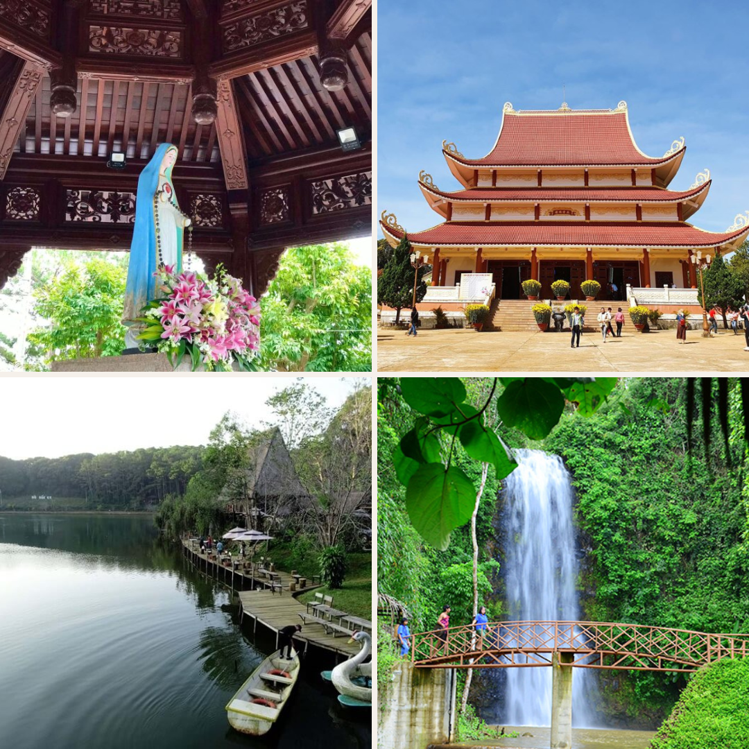 - Tượng Đức Mẹ Măng Đen: điểm dừng chân mang đậm màu sắc tín ngưỡng giữa khung cảnh thiên nhiên hoang sơ. Bức tượng nhỏ bằng đá với vẻ mặt hiền hòa, nhân hậu, được nhiều người tin là nơi cầu nguyện linh thiêng và gửi gắm niềm tin. Không gian xung quanh yên ả, thoảng trong tiếng gió và mùi hương rừng, khiến nơi đây trở thành chốn lý tưởng để lặng mình chiêm nghiệm và tìm lại sự tĩnh tại trong tâm hồn.