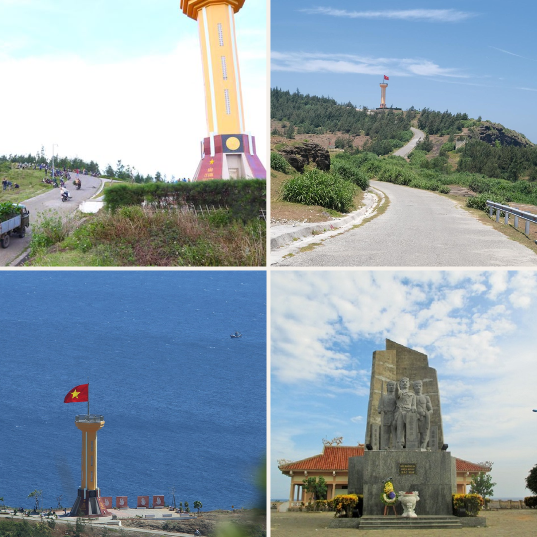 - Cột cờ Tổ quốc đảo Lý Sơn: là biểu tượng thiêng liêng, khẳng định mạnh mẽ chủ quyền biển đảo bất khả xâm phạm của Việt Nam. Sừng sững giữa nền trời xanh thẳm và biển khơi bao la, cột cờ không chỉ là niềm tự hào của người dân Lý Sơn mà còn là điểm dừng chân đầy cảm xúc đối với bao du khách. Tại đây, dưới lá cờ đỏ sao vàng kiêu hãnh tung bay trong gió, du khách có thể thu trọn vào tầm mắt toàn cảnh đảo ngọc hùng vĩ, đồng thời ghi lại những khoảnh khắc thiêng liêng như một lời nhắc nhở về tình yêu Tổ quốc, lòng tự hào dân tộc và trách nhiệm gìn giữ chủ quyền biển đảo thiêng liêng