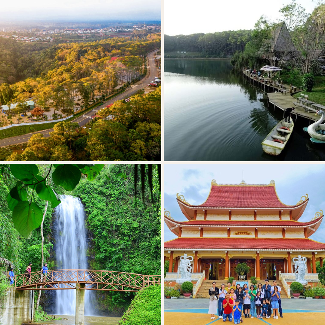 - Chùa Khánh Lâm: mang vẻ đẹp trang nghiêm, thanh tịnh hòa quyện cùng cảnh sắc thiên nhiên yên bình. Được xây dựng theo phong cách kiến trúc Phật giáo truyền thống, từng chi tiết tại chùa đều được chạm khắc tỉ mỉ, thể hiện sự hài hòa giữa nghệ thuật và tâm linh. Tọa lạc giữa rừng thông xanh rì rào, ngôi chùa như một điểm tựa tĩnh lặng giữa cao nguyên lộng gió, nơi du khách có thể nhẹ nhàng thả lòng mình, gác lại mọi ồn ào của cuộc sống thường nhật. Không chỉ là nơi hành hương và chiêm bái, Chùa Khánh Lâm còn là không gian lý tưởng để thiền định, tịnh tâm và cảm nhận sự an yên đến từ bên trong.